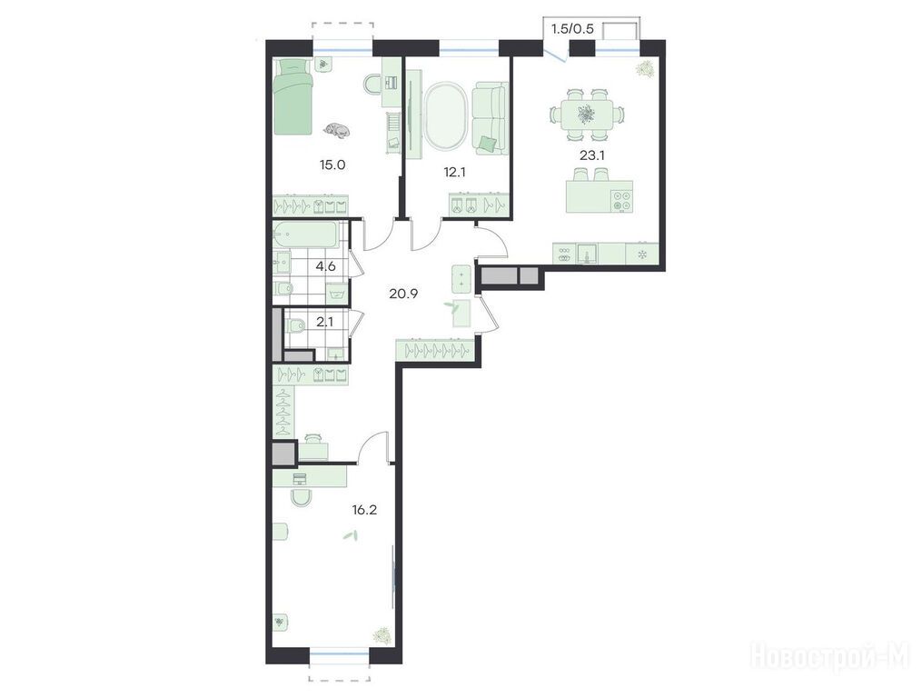 В джи три театральном меня зацепило, что есть двухуровневые квартиры. Проект производит хорошее впечатление, интересные планировки.