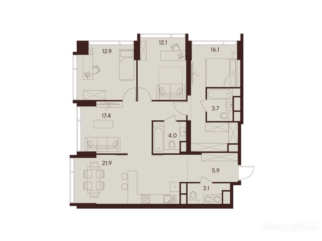 Продается четырехкомнатная квартира в новостройке ЖК Indy Towers (Инди Тауэрс) по адресу Москва, САО, Хорошевский, ул. Куусинена, вл.21, 21А. Общая площадь квартиры - 97.1 кв. м. Тип проекта, по которому построен дом — Монолитно-кирпичный, компания-застройщик — Группа «Аквилон». Стоимость квартиры — 58 282 685 руб. Способы оплаты можно уточнить у продавца. Срок сдачи — 3 квартал 2029. Более подробная информация по телефону.