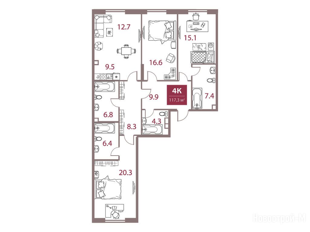 Планировки угловых многокомнатных шикарные! Мы забронировали 4-комнатную, где гостиная идет как бы в форме сектора круга и 3 окна по округлой стене сразу выходят на 2 стороны света. Кстати, это один из немногих жк, где застройщик предлагает отделку класса Premium либо Elite.