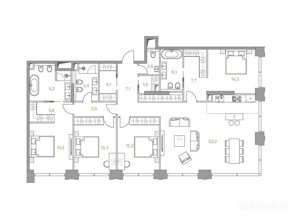 1. Большой пул самых востребованных семейных квартир с двумя-тремя спальнями.