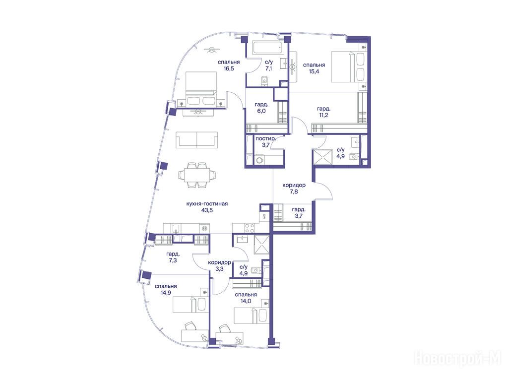 Продается четырехкомнатная квартира в новостройке ЖК «Начало» по адресу Москва, ЦАО, Пресненский, ул. Сергея Макеева, вл. 7, корп. 6. Общая площадь квартиры - 164.2 кв. м. Тип проекта, по которому построен дом — Монолитно-кирпичный, компания-застройщик — Донстрой. Стоимость квартиры — 163 602 312 руб. Способы оплаты можно уточнить у продавца. Срок сдачи — 1 квартал 2030. Более подробная информация по телефону.