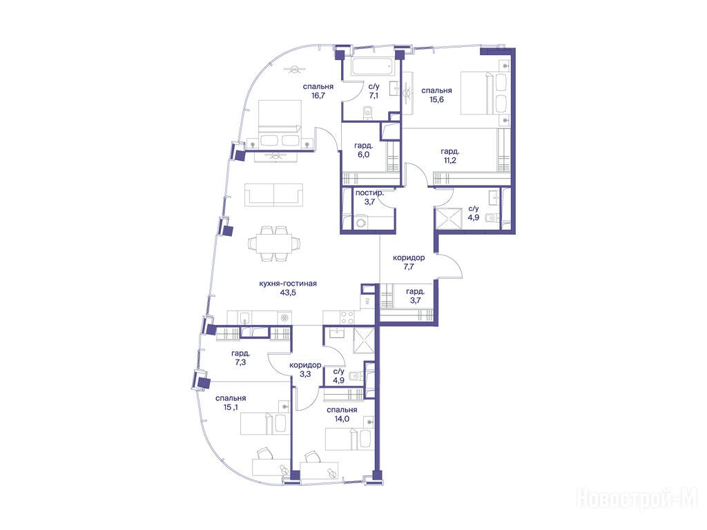 Продается четырехкомнатная квартира в новостройке ЖК «Начало» по адресу Москва, ЦАО, Пресненский, ул. Сергея Макеева, вл. 7, корп. 6. Общая площадь квартиры - 164.7 кв. м. Тип проекта, по которому построен дом — Монолитно-кирпичный, компания-застройщик — Донстрой. Стоимость квартиры — 187 099 200 руб. Способы оплаты можно уточнить у продавца. Срок сдачи — 1 квартал 2030. Более подробная информация по телефону.