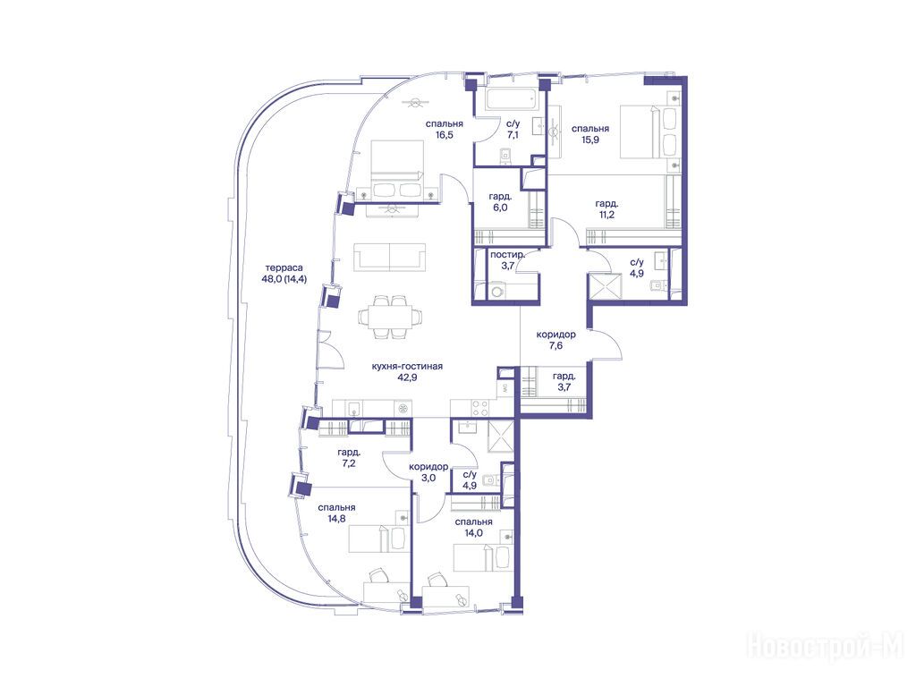 Продается четырехкомнатная квартира в новостройке ЖК «Начало» по адресу Москва, ЦАО, Пресненский, ул. Сергея Макеева, вл. 7, корп. 6. Общая площадь квартиры - 177.8 кв. м. Тип проекта, по которому построен дом — Монолитно-кирпичный, компания-застройщик — Донстрой. Стоимость квартиры — 255 676 400 руб. Способы оплаты можно уточнить у продавца. Срок сдачи — 1 квартал 2030. Более подробная информация по телефону.