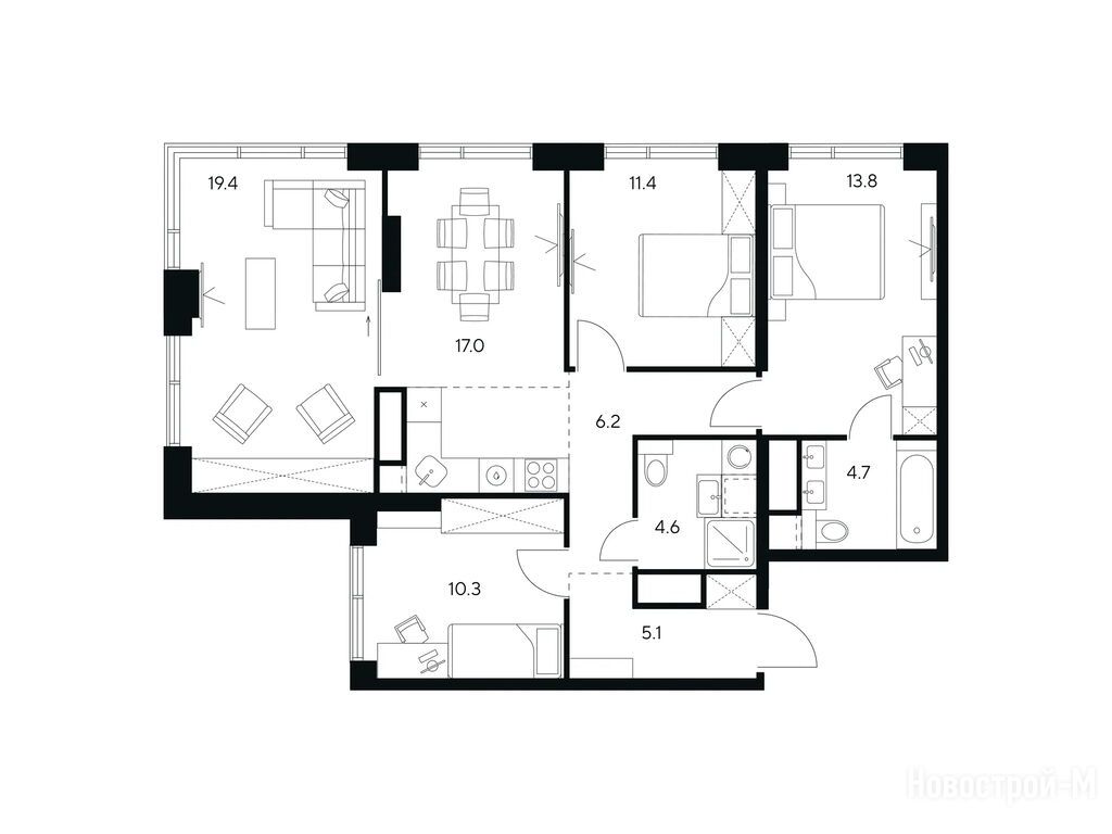 Форма и стиль проекта впечатляют: современные решения, акцент на детали. Внутреннее пространство комфортное. Цена выше среднего, что сразу чувствуется при выборе. Район активно развивается, но часть инфраструктуры пока в процессе.