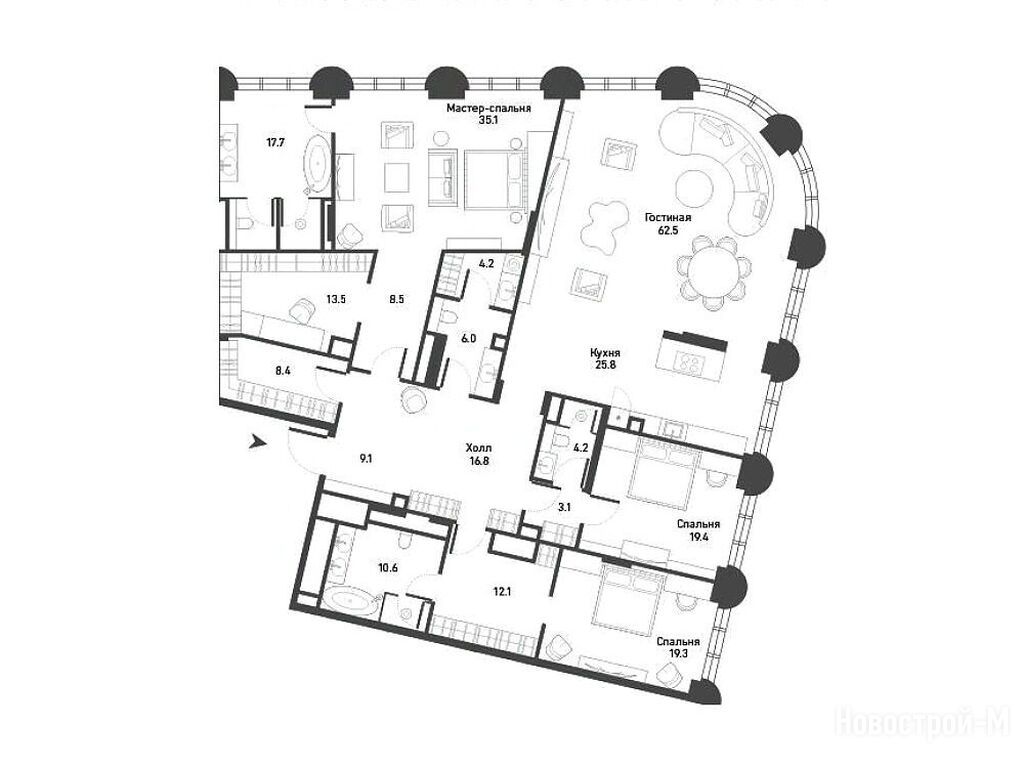 Продается четырехкомнатная квартира в новостройке ЖК «Никитский 6» по адресу Москва, ЦАО, Арбат, Никитский б-р, 6/20. Общая площадь квартиры - 274.7 кв. м. Тип проекта, по которому построен дом — Монолитно-кирпичный, компания-застройщик — R4S, ООО «СЗ «Третий Рим». Стоимость квартиры — 1 168 848 500 руб. Способы оплаты можно уточнить у продавца. Срок сдачи — 4 квартал 2026. Более подробная информация по телефону.