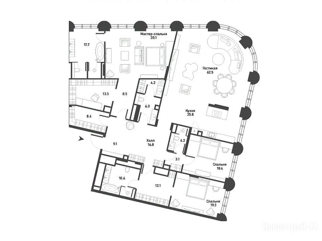 Продается четырехкомнатная квартира в новостройке ЖК «Никитский 6» по адресу Москва, ЦАО, Арбат, Никитский б-р, 6/20. Общая площадь квартиры - 276.3 кв. м. Тип проекта, по которому построен дом — Монолитно-кирпичный, компания-застройщик — R4S, ООО «СЗ «Третий Рим». Стоимость квартиры — 737 859 150 руб. Способы оплаты можно уточнить у продавца. Срок сдачи — 4 квартал 2026. Более подробная информация по телефону.