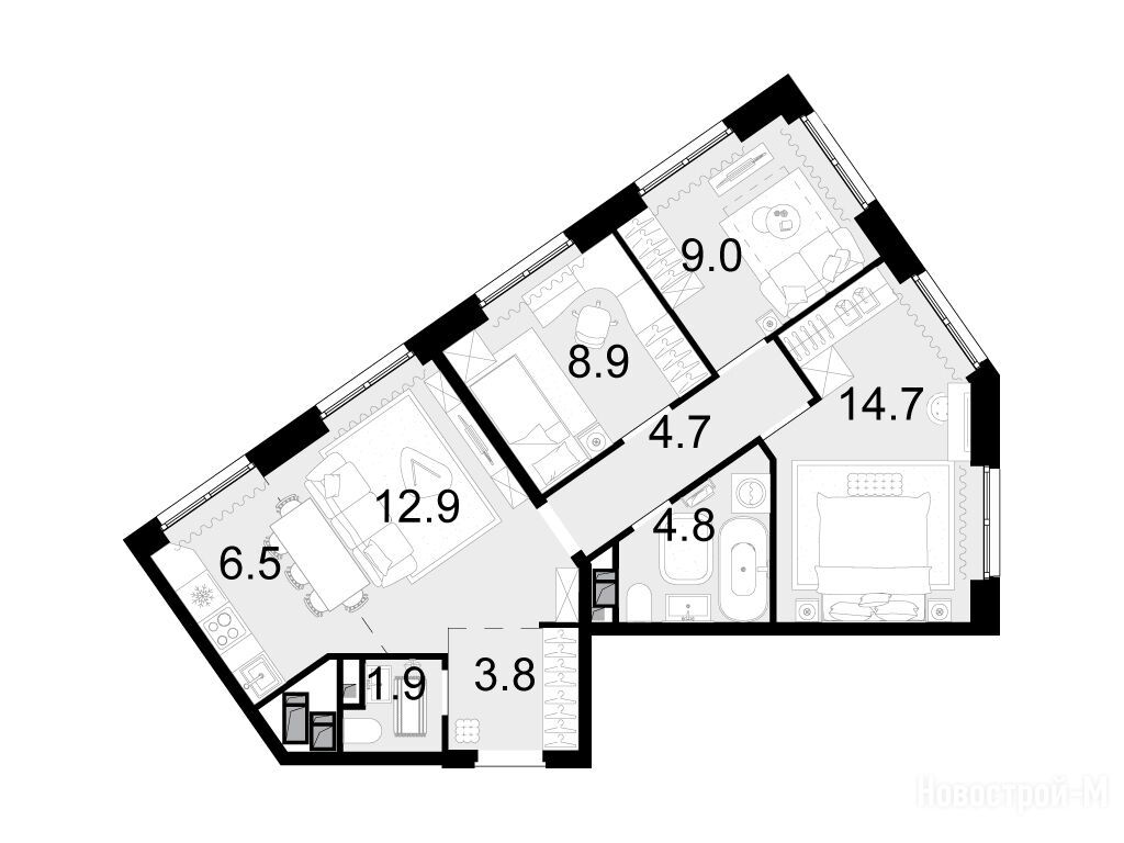 Данная квартира является лидером продаж среди четырехкомнатных квартир в ЖК «Новая Звезда II очередь» по данным Росреестра