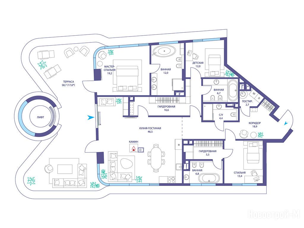 Из плюсов могу выделить высокие потолки от 3,20 метров, умный дом уже входит, видовые террасы. Контингент приличный. То есть тут покупаешь даже не столько недвижку, сколько вклад в будущее своих детей с приличным окружением. Человек красит место, как говорится.