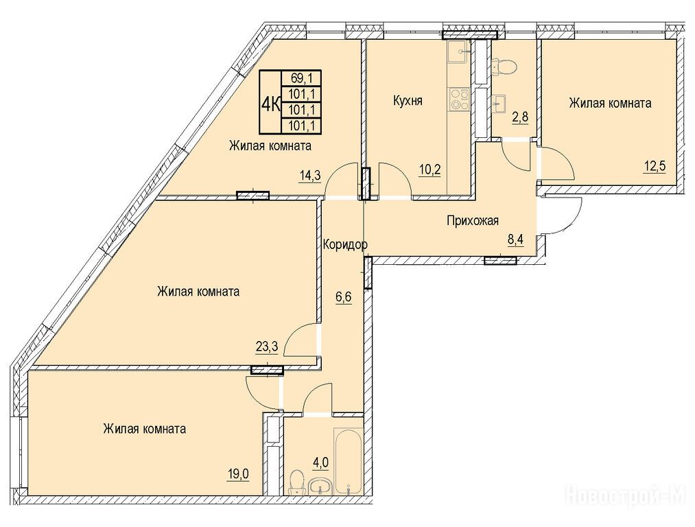 Продается четырехкомнатная квартира в новостройке ЖК «Отрадный» по адресу Московская область, Мытищи городской округ, Мытищи, ул. Академика Каргина, 1-й Щёлковский пр-д, Олимпийский пр-т, корп. 5. Общая площадь квартиры - 101.1 кв. м. Тип проекта, по которому построен дом — Монолитно-кирпичный, компания-застройщик — Инвест-Строй. Стоимость квартиры — 17 995 800 руб. Способы оплаты можно уточнить у продавца. Срок сдачи — 3 квартал 2027. Более подробная информация по телефону.