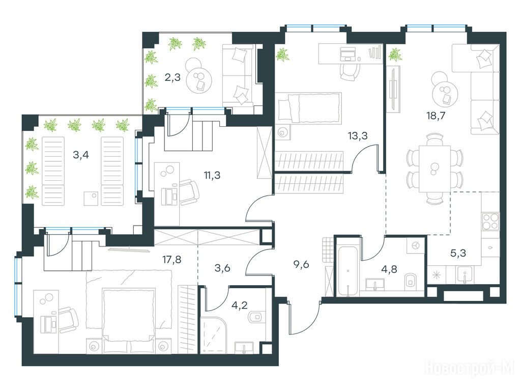 Продается четырехкомнатная квартира в новостройке Level Павелецкая Сити по адресу Москва, ЮАО, Даниловский, ул. Дубининская, вл. 69, корп. 13. Общая площадь квартиры - 94.3 кв. м. Тип проекта, по которому построен дом — Монолит,Монолитно-кирпичный, компания-застройщик — Level Group (Левел Групп). Стоимость квартиры — 64 186 941 руб. Способы оплаты можно уточнить у продавца. Срок сдачи — 4 квартал 2027. Более подробная информация по телефону.