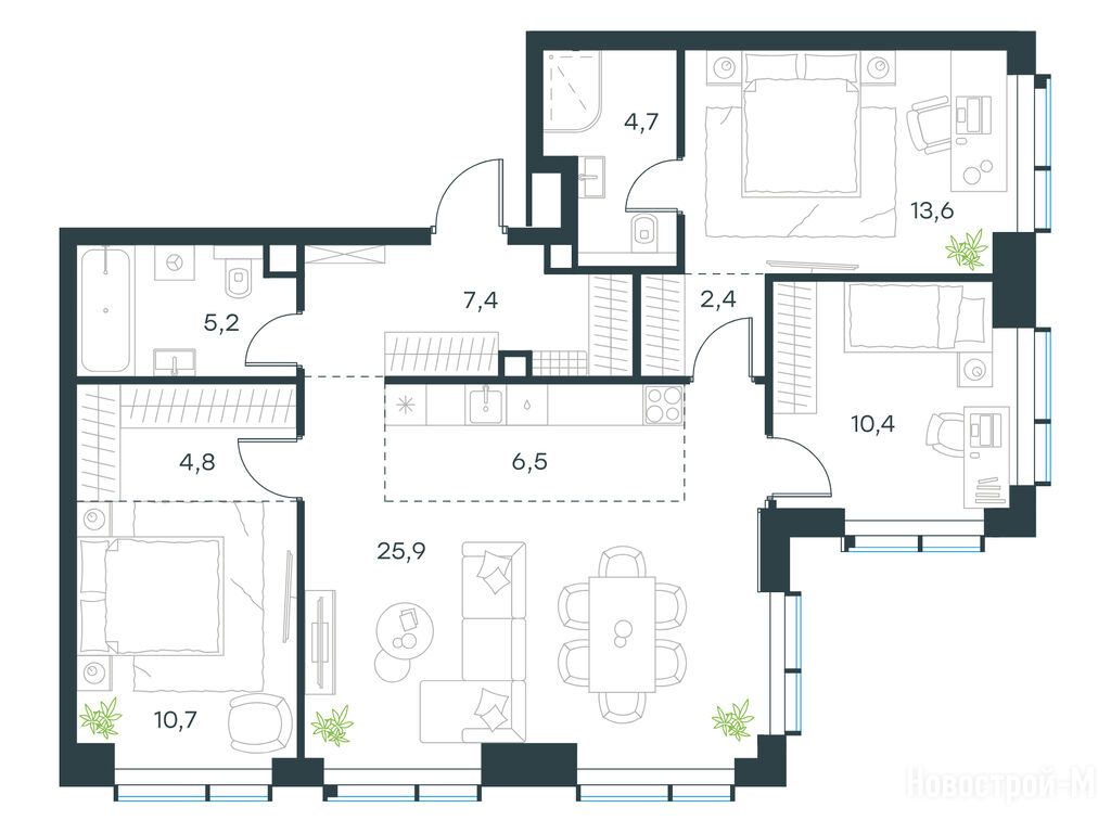 Продается четырехкомнатная квартира в новостройке Level Павелецкая Сити по адресу Москва, ЮАО, Даниловский, ул. Дубининская, вл. 69, корп. 15. Общая площадь квартиры - 91.6 кв. м. Тип проекта, по которому построен дом — Монолит,Монолитно-кирпичный, компания-застройщик — Level Group (Левел Групп). Стоимость квартиры — 48 784 148 руб. Способы оплаты можно уточнить у продавца. Срок сдачи — 4 квартал 2027. Более подробная информация по телефону.