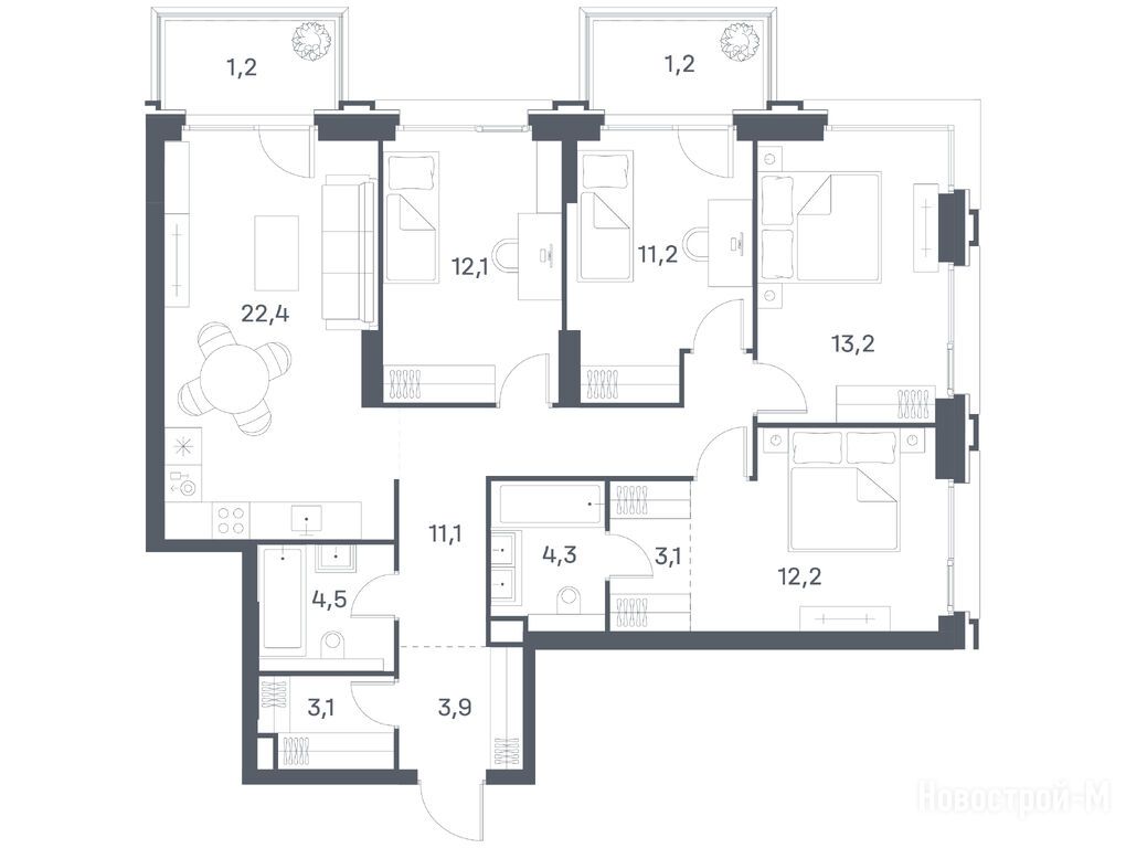 Продается четырехкомнатная квартира в новостройке ЖК «Портленд» по адресу Москва, ЮВАО, Печатники, ул. Южнопортовая, 42, корп. 8. Общая площадь квартиры - 103.5 кв. м. Тип проекта, по которому построен дом — Монолитно-кирпичный, компания-застройщик — FORMA (Форма), ООО СЗ Риверсайд. Стоимость квартиры — 66 415 950 руб. Способы оплаты можно уточнить у продавца. Срок сдачи — 1 квартал 2028. Более подробная информация по телефону.