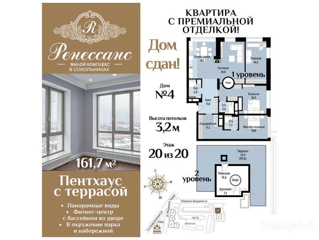 Продается четырехкомнатная квартира в новостройке ЖК «Ренессанс» по адресу Москва, ВАО, Сокольники, ул. Рубцовско-Дворцовская, вл. 10. Общая площадь квартиры - 168.12 кв. м. Тип проекта, по которому построен дом — Монолитно-кирпичный, компания-застройщик — 494 УНР. Стоимость квартиры — 139 647 003 руб. Способы оплаты можно уточнить у продавца. Более подробная информация по телефону.