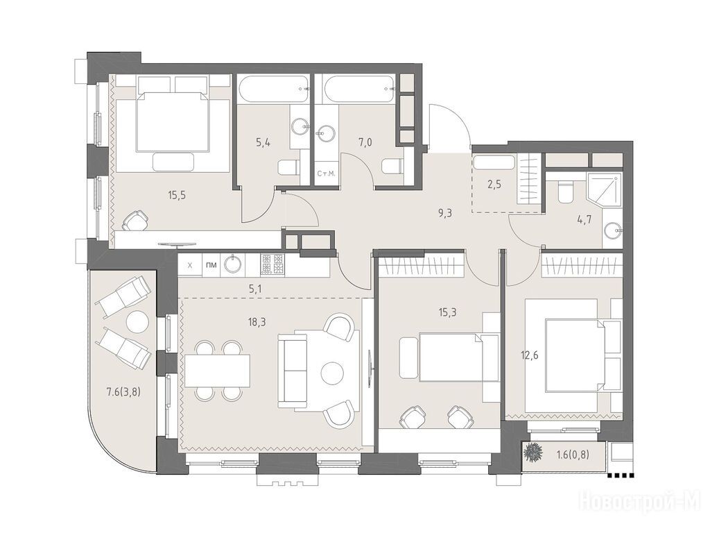 Продается четырехкомнатная квартира в новостройке ЖК «Родина Парк» по адресу Москва, ЗАО, Можайский, ул. Верейская, вл. 12, корп. 2. Общая площадь квартиры - 100.3 кв. м. Тип проекта, по которому построен дом — Монолитно-кирпичный, компания-застройщик — ГРУППА РОДИНА. Стоимость квартиры — 83 096 227 руб. Способы оплаты можно уточнить у продавца. Срок сдачи — 4 квартал 2026. Более подробная информация по телефону.