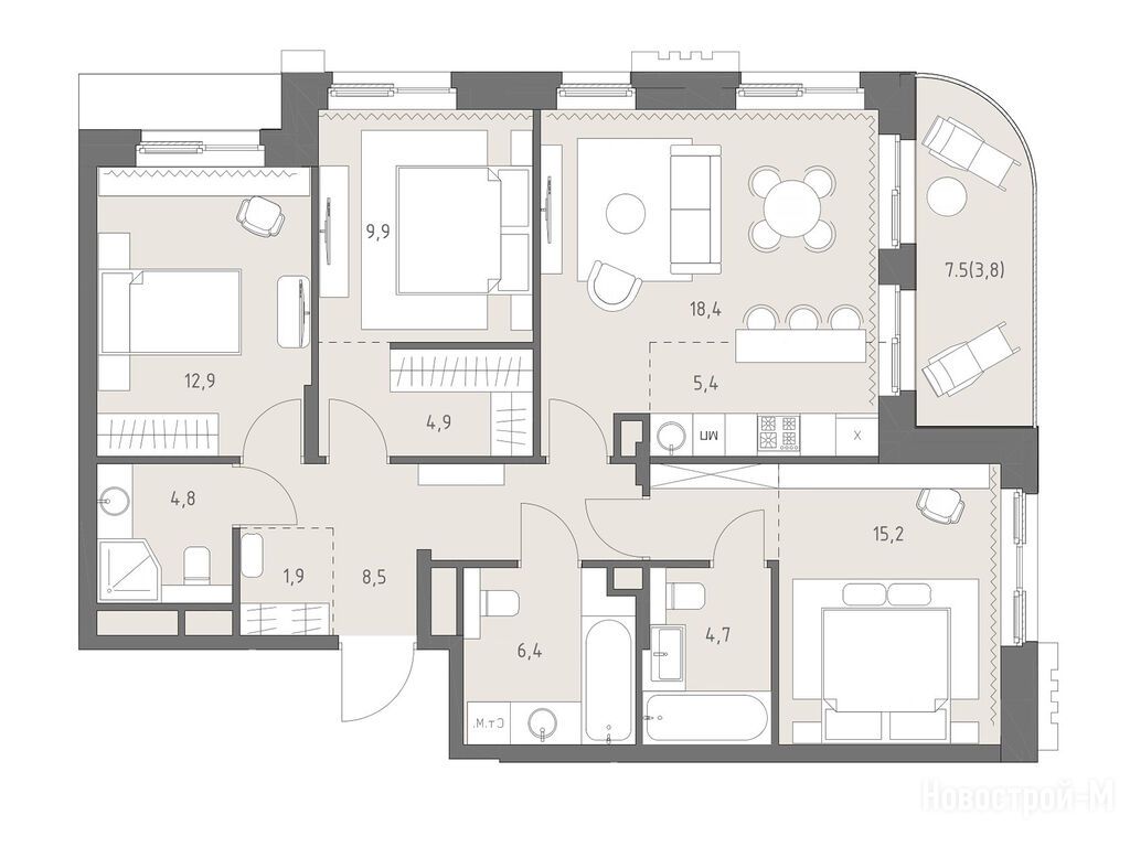 Продается четырехкомнатная квартира в новостройке ЖК «Родина Парк» по адресу Москва, ЗАО, Можайский, ул. Верейская, вл. 12, корп. 2. Общая площадь квартиры - 96.8 кв. м. Тип проекта, по которому построен дом — Монолитно-кирпичный, компания-застройщик — ГРУППА РОДИНА. Стоимость квартиры — 97 559 648 руб. Способы оплаты можно уточнить у продавца. Срок сдачи — 4 квартал 2026. Более подробная информация по телефону.
