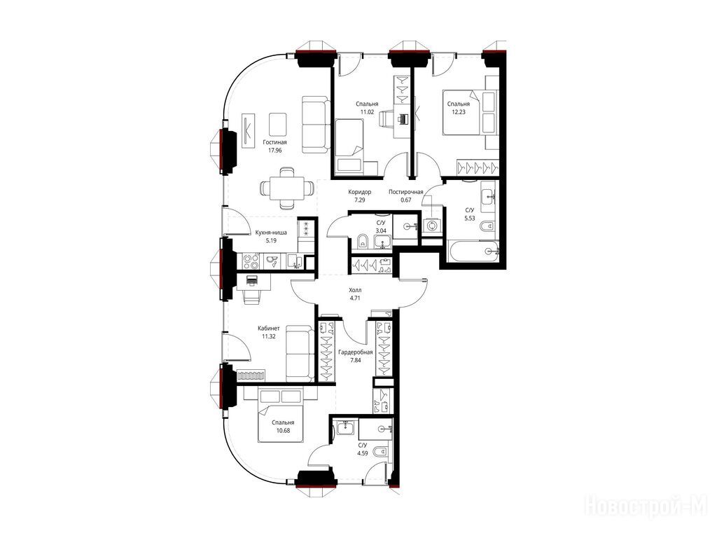 Продается четырехкомнатная квартира в новостройке ЖК SET (СЕТ) по адресу Москва, ЗАО, Можайский, ул. Верейская, вл. 29, стр. 32Б, корп. С. Общая площадь квартиры - 102.07 кв. м. Тип проекта, по которому построен дом — Монолитно-кирпичный, компания-застройщик — MR Group (МР Групп). Стоимость квартиры — 49 817 305 руб. Способы оплаты можно уточнить у продавца. Срок сдачи — 3 квартал 2028. Более подробная информация по телефону.
