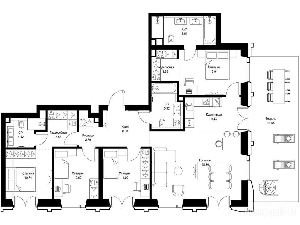 Продается четырехкомнатная квартира в новостройке ЖК SET (СЕТ) по адресу Москва, ЗАО, Можайский, ул. Верейская, вл. 29, стр. 32Б, корп. Б. Общая площадь квартиры - 132.19 кв. м. Тип проекта, по которому построен дом — Монолитно-кирпичный, компания-застройщик — MR Group (МР Групп). Стоимость квартиры — 87 836 289 руб. Способы оплаты можно уточнить у продавца. Срок сдачи — 3 квартал 2028. Более подробная информация по телефону.