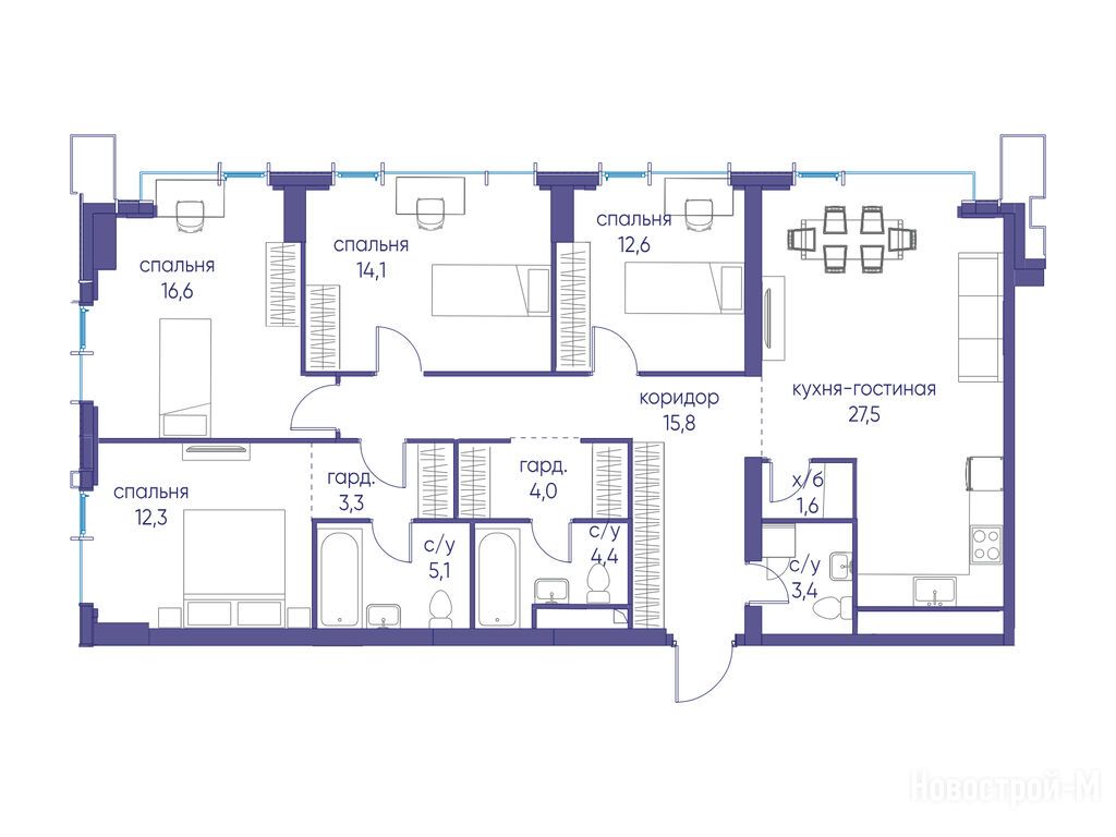 4-комн. квартира, 120.70 м2, 4 этаж