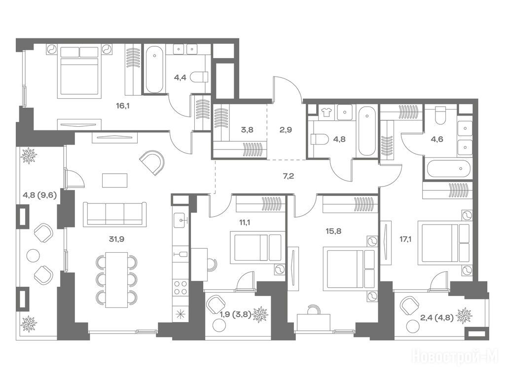 Продается четырехкомнатная квартира в новостройке ЖК SOUL (Соул) по адресу Москва, САО, Аэропорт, ул. Часовая, вл. 28, корп. 7. Общая площадь квартиры - 128.8 кв. м. Тип проекта, по которому построен дом — Монолитно-кирпичный, компания-застройщик — FORMA (Форма), ООО СЗ Часовая. Стоимость квартиры — 80 371 200 руб. Способы оплаты можно уточнить у продавца. Срок сдачи — 1 квартал 2029. Более подробная информация по телефону.