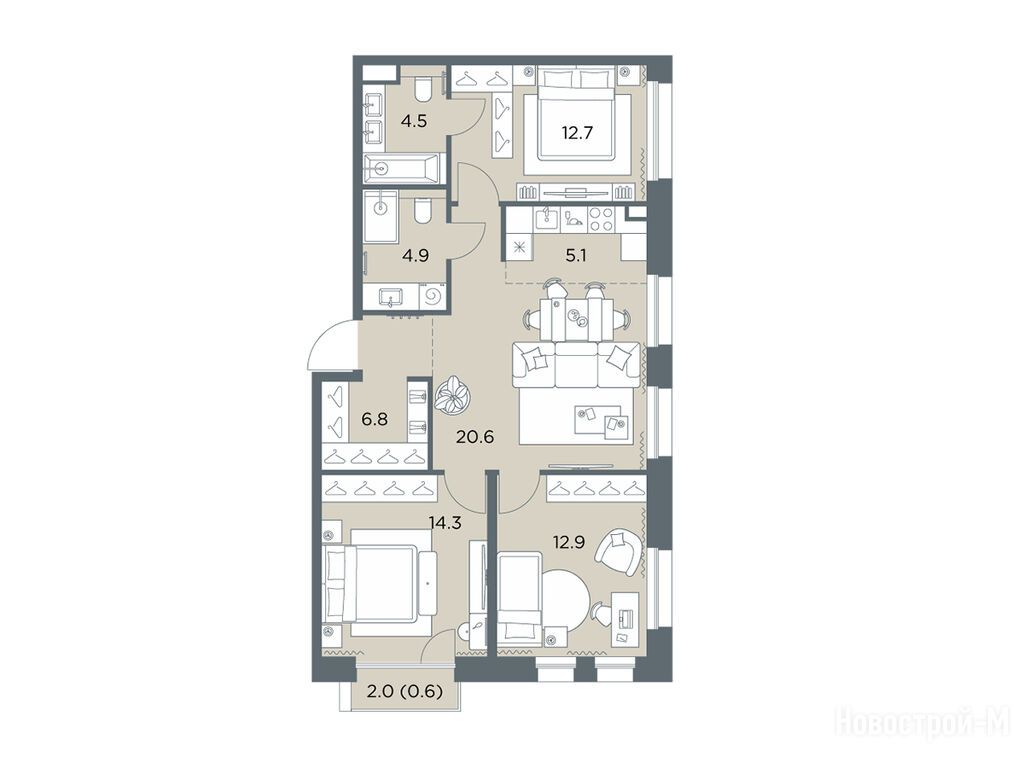 Тут шикарные квартиры - от студий до пятикомнатных пентхаусов, площадь от 28 до 103 кв. м. Во всех квартирах увеличенная площадь остекления, большие кухни, просторные гостиные и продуманные гардеробные. Есть варианты с мастер-спальнями, угловыми окнами и постирочными, а еще квартиры со вторым светом, каминными залами, личными террасами, патио, зимними садами, тремя спальнями и дополнительными санузлами.