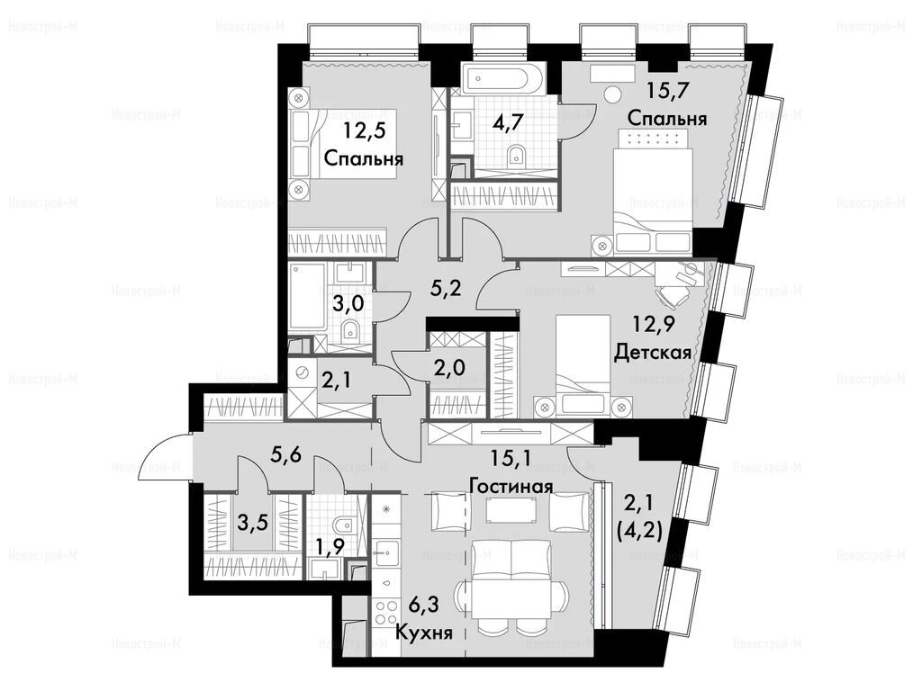 Продается четырехкомнатная квартира в новостройке ЖК «Сидней Сити» по адресу Москва, СЗАО, Хорошево-Мневники, район Хорошёво-Мнёвники, жилой комплекс Сидней Сити. Общая площадь квартиры - 93.8 кв. м. Тип проекта, по которому построен дом — Монолитно-кирпичный, компания-застройщик — ГК ФСК. Стоимость квартиры — 55 122 883 руб. Способы оплаты можно уточнить у продавца. Срок сдачи — 3 квартал 2026. Более подробная информация по телефону.