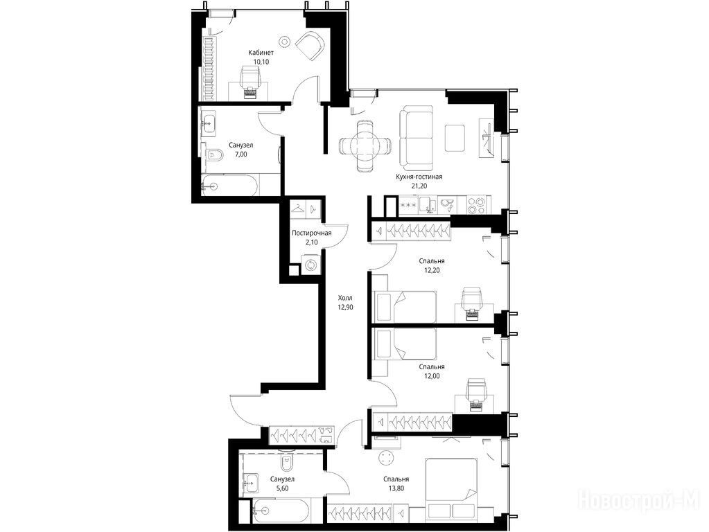 Продается четырехкомнатная квартира в новостройке ЖК Veer (Веер) по адресу Москва, ЗАО, Можайский, ул. Верейская, вл. 29, корп. 5. Общая площадь квартиры - 96.9 кв. м. Тип проекта, по которому построен дом — Монолитно-кирпичный, компания-застройщик — MR Group (МР Групп), ООО СЗ СтройКапитал. Стоимость квартиры — 46 453 860 руб. Способы оплаты можно уточнить у продавца. Срок сдачи — 3 квартал 2028. Более подробная информация по телефону.