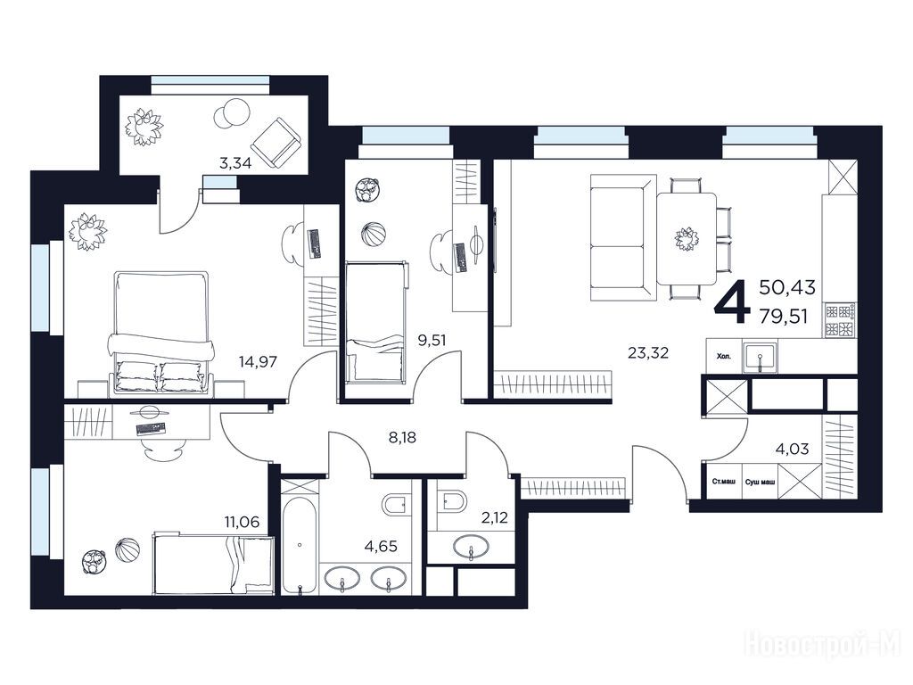 Продается четырехкомнатная квартира в новостройке ЖК «Восток II» по адресу Московская область, Химки городской округ, Химки, ул. Германа Титова, корп. 2. Общая площадь квартиры - 79.51 кв. м. Тип проекта, по которому построен дом — Монолитно-кирпичный, компания-застройщик — ООО СЗ «Новое Время - Химки». Стоимость квартиры — 19 718 480 руб. Способы оплаты можно уточнить у продавца. Срок сдачи — 2 квартал 2027. Более подробная информация по телефону.