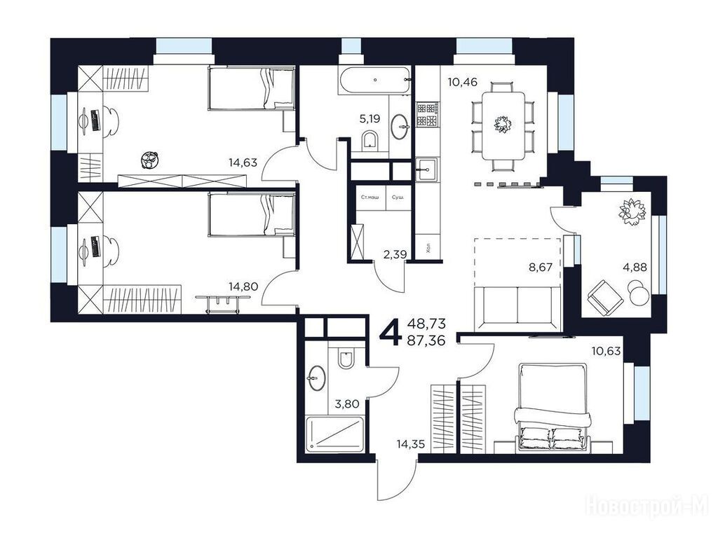 Продается четырехкомнатная квартира в новостройке ЖК «Восток II» по адресу Московская область, Химки городской округ, Химки, ул. Германа Титова, корп. 7. Общая площадь квартиры - 87.35 кв. м. Тип проекта, по которому построен дом — Монолитно-кирпичный, компания-застройщик — ООО СЗ «Новое Время - Химки». Стоимость квартиры — 24 283 300 руб. Способы оплаты можно уточнить у продавца. Срок сдачи — 2 квартал 2027. Более подробная информация по телефону.