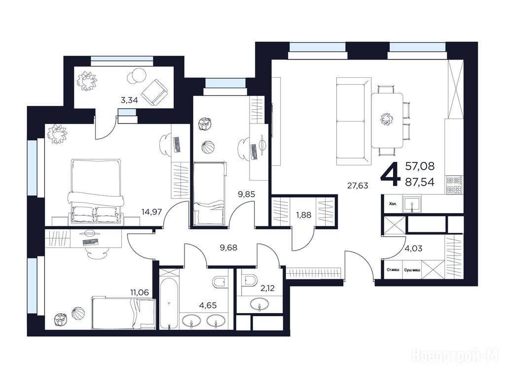 Продается четырехкомнатная квартира в новостройке ЖК «Восток II» по адресу Московская область, Химки городской округ, Химки, ул. Германа Титова, корп. 2. Общая площадь квартиры - 87.54 кв. м. Тип проекта, по которому построен дом — Монолитно-кирпичный, компания-застройщик — ООО СЗ «Новое Время - Химки». Стоимость квартиры — 25 299 060 руб. Способы оплаты можно уточнить у продавца. Срок сдачи — 2 квартал 2027. Более подробная информация по телефону.