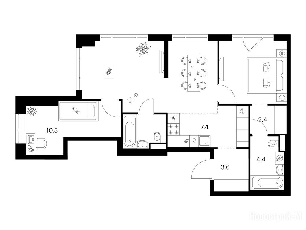 Взяли двушку. Прикольно, что уже на 59 квадратов идут 2 с/у. Сначала смутило, что без балкона, но вообще вместо них кладовые делают. Реально удобно, не надо квартиру хламом нагружать. Поэтому в планах еще кладовку покупать.