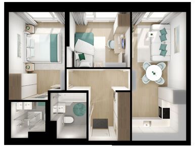 Взяли двушку. Прикольно, что уже на 59 квадратов идут 2 с/у. Сначала смутило, что без балкона, но вообще вместо них кладовые делают. Реально удобно, не надо квартиру хламом нагружать. Поэтому в планах еще кладовку покупать.
