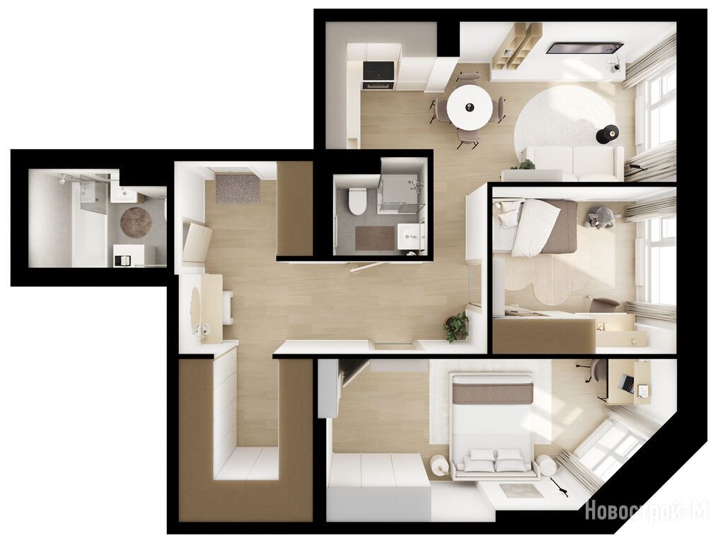 Взяли двушку. Прикольно, что уже на 59 квадратов идут 2 с/у. Сначала смутило, что без балкона, но вообще вместо них кладовые делают. Реально удобно, не надо квартиру хламом нагружать. Поэтому в планах еще кладовку покупать.