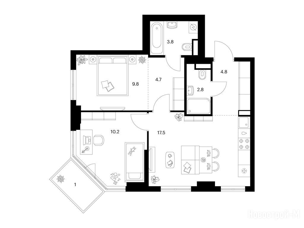 Взяли двушку. Прикольно, что уже на 59 квадратов идут 2 с/у. Сначала смутило, что без балкона, но вообще вместо них кладовые делают. Реально удобно, не надо квартиру хламом нагружать. Поэтому в планах еще кладовку покупать.