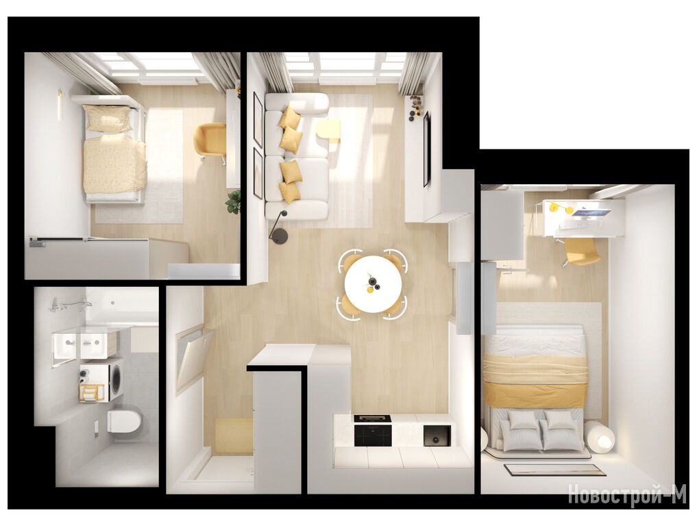 Взяли двушку. Прикольно, что уже на 59 квадратов идут 2 с/у. Сначала смутило, что без балкона, но вообще вместо них кладовые делают. Реально удобно, не надо квартиру хламом нагружать. Поэтому в планах еще кладовку покупать.