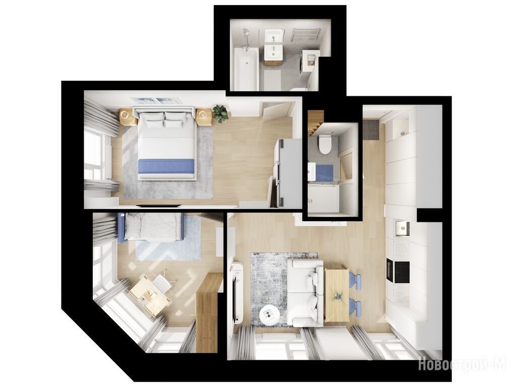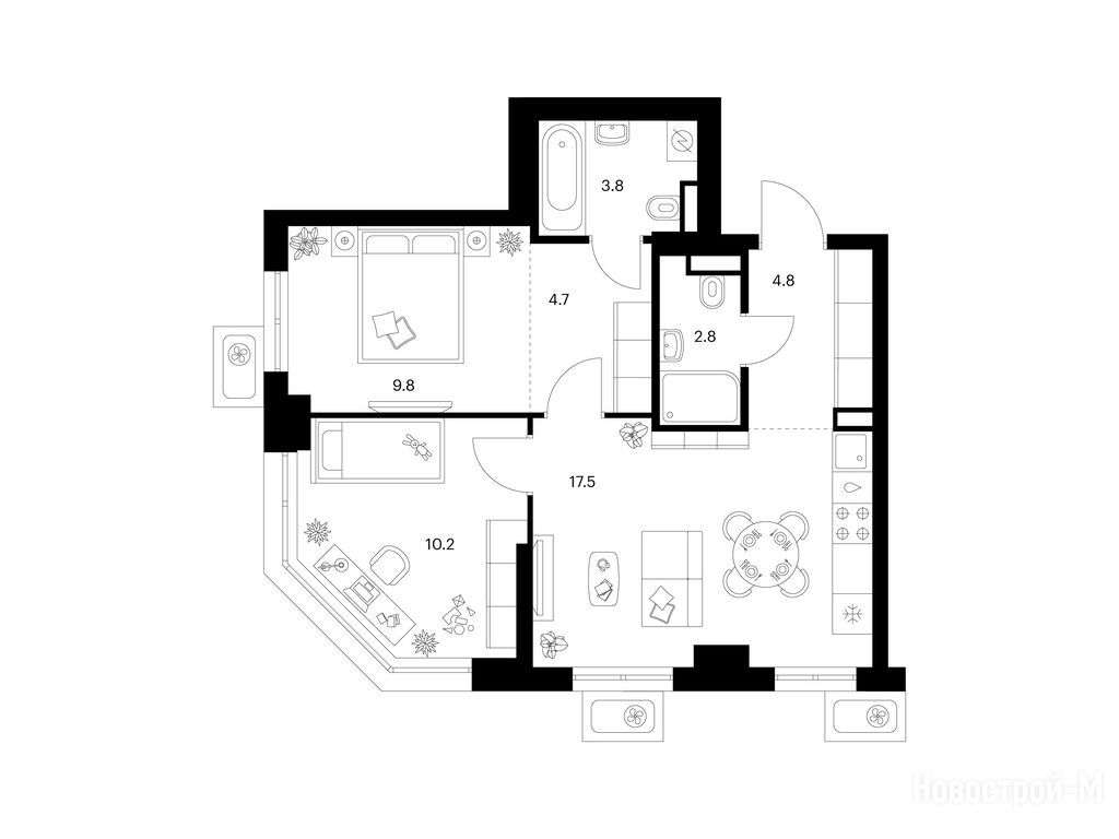 Взяли двушку. Прикольно, что уже на 59 квадратов идут 2 с/у. Сначала смутило, что без балкона, но вообще вместо них кладовые делают. Реально удобно, не надо квартиру хламом нагружать. Поэтому в планах еще кладовку покупать.