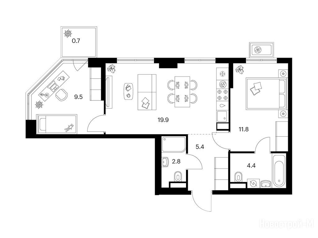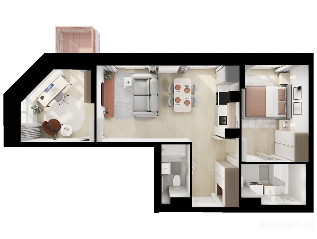 Взяли двушку. Прикольно, что уже на 59 квадратов идут 2 с/у. Сначала смутило, что без балкона, но вообще вместо них кладовые делают. Реально удобно, не надо квартиру хламом нагружать. Поэтому в планах еще кладовку покупать.