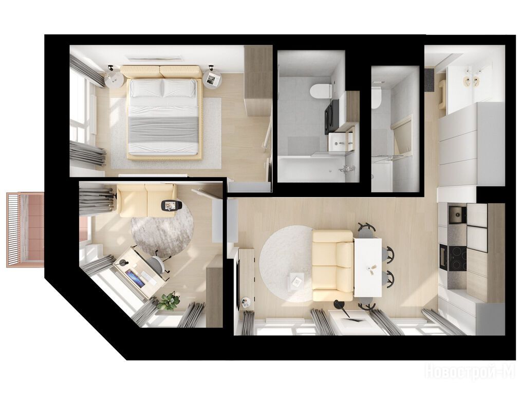 Взяли двушку. Прикольно, что уже на 59 квадратов идут 2 с/у. Сначала смутило, что без балкона, но вообще вместо них кладовые делают. Реально удобно, не надо квартиру хламом нагружать. Поэтому в планах еще кладовку покупать.