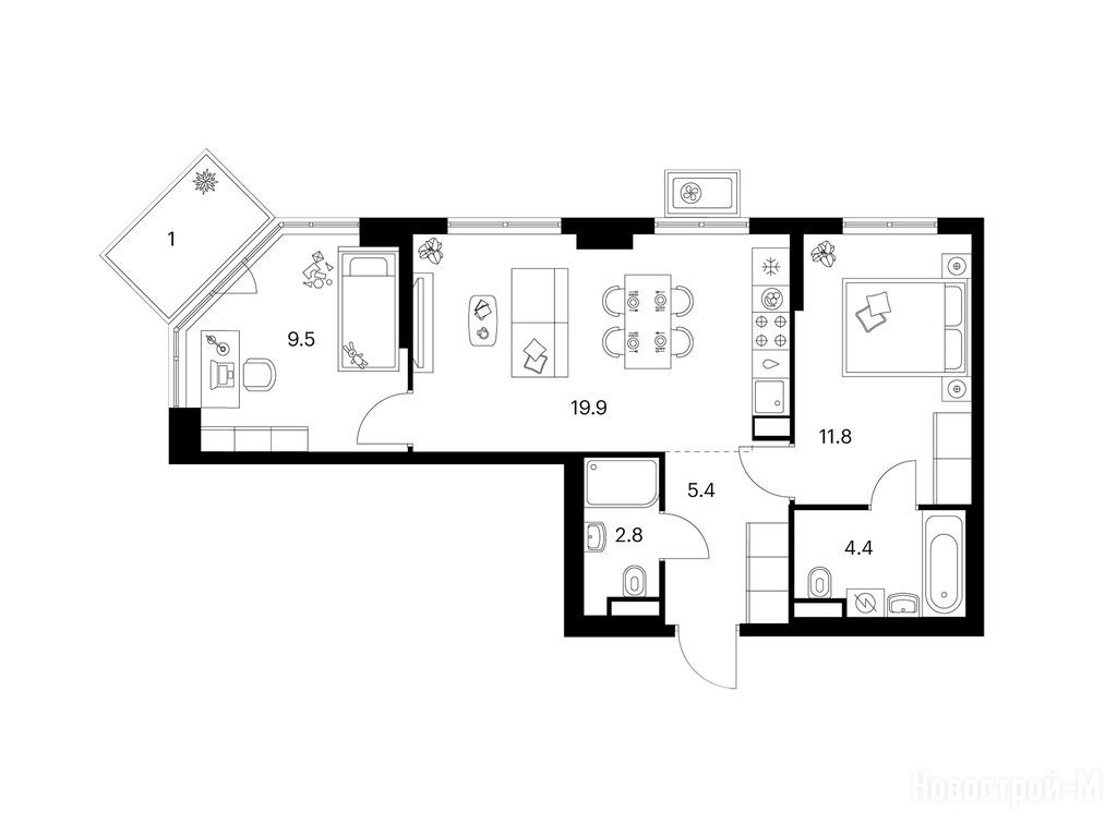 Взяли двушку. Прикольно, что уже на 59 квадратов идут 2 с/у. Сначала смутило, что без балкона, но вообще вместо них кладовые делают. Реально удобно, не надо квартиру хламом нагружать. Поэтому в планах еще кладовку покупать.