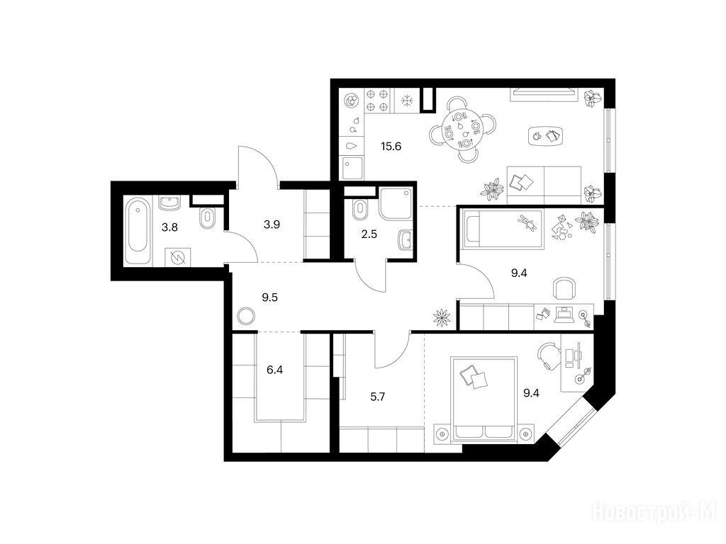 Взяли двушку. Прикольно, что уже на 59 квадратов идут 2 с/у. Сначала смутило, что без балкона, но вообще вместо них кладовые делают. Реально удобно, не надо квартиру хламом нагружать. Поэтому в планах еще кладовку покупать.