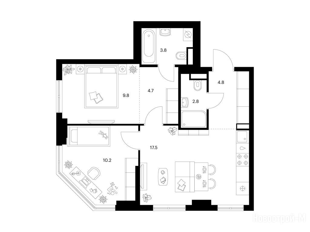 Взяли двушку. Прикольно, что уже на 59 квадратов идут 2 с/у. Сначала смутило, что без балкона, но вообще вместо них кладовые делают. Реально удобно, не надо квартиру хламом нагружать. Поэтому в планах еще кладовку покупать.