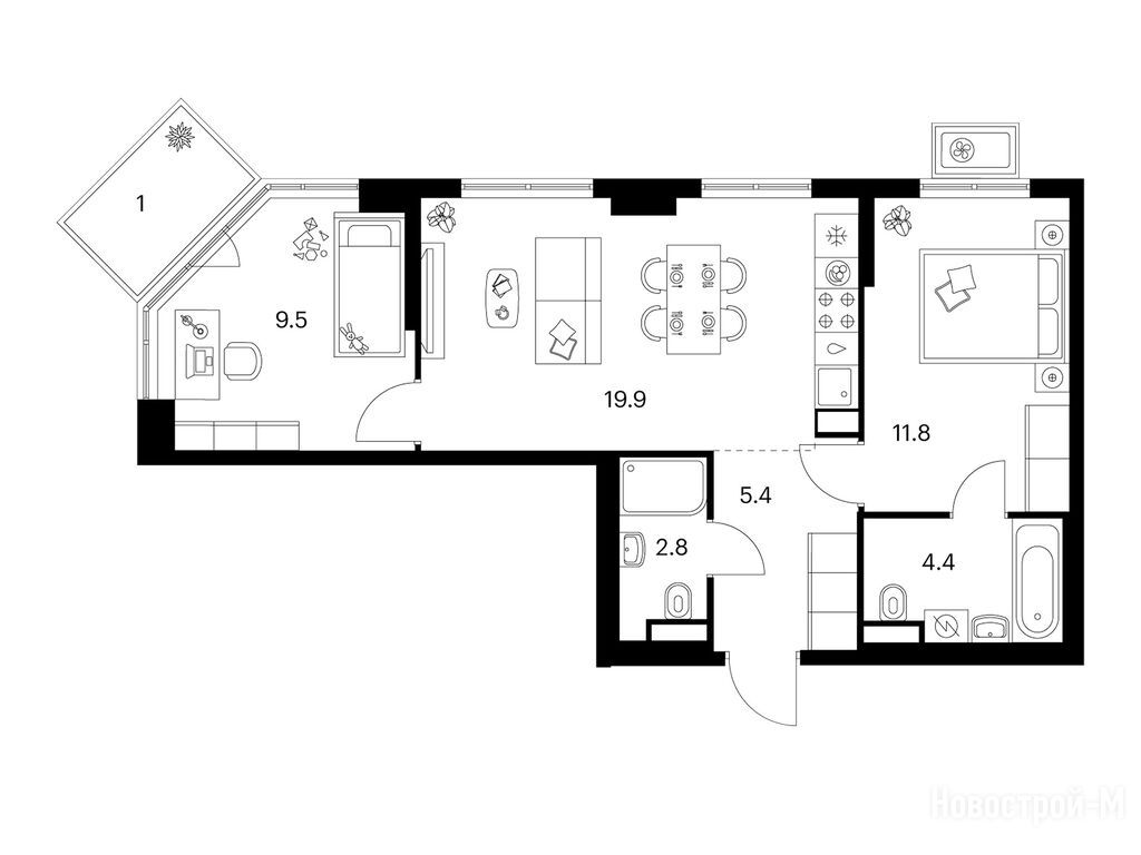Взяли двушку. Прикольно, что уже на 59 квадратов идут 2 с/у. Сначала смутило, что без балкона, но вообще вместо них кладовые делают. Реально удобно, не надо квартиру хламом нагружать. Поэтому в планах еще кладовку покупать.