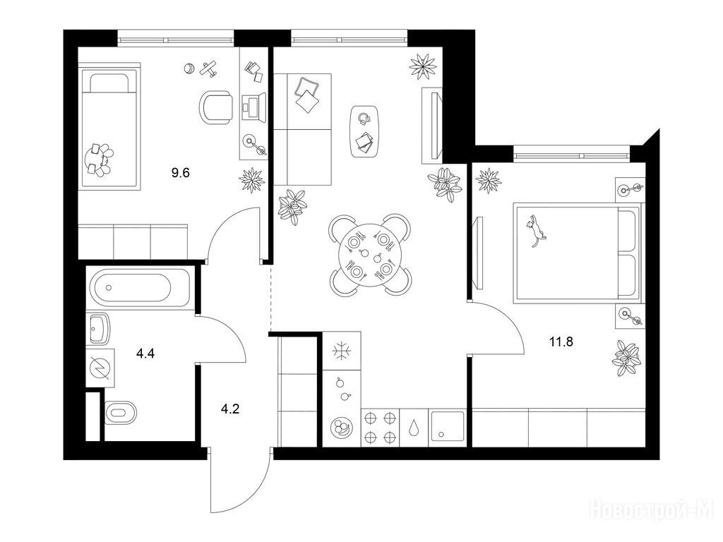 Взяли двушку. Прикольно, что уже на 59 квадратов идут 2 с/у. Сначала смутило, что без балкона, но вообще вместо них кладовые делают. Реально удобно, не надо квартиру хламом нагружать. Поэтому в планах еще кладовку покупать.