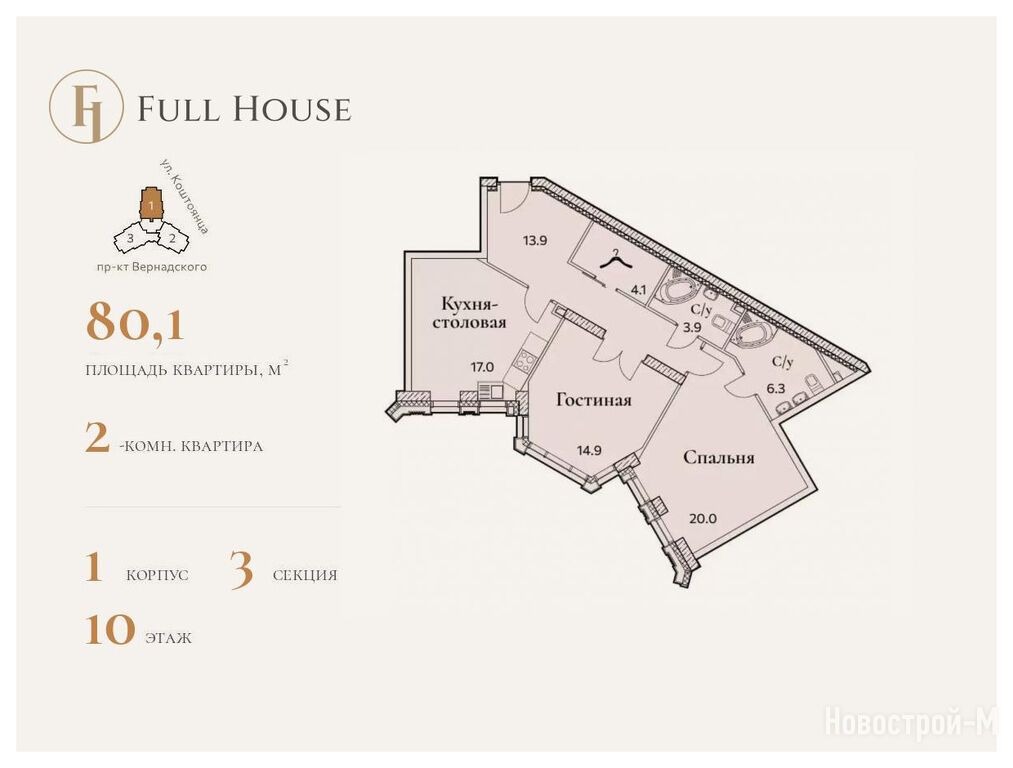 Продается двухкомнатная квартира в новостройке Клубный дом Full House (Фул Хаус) по адресу Москва, ЗАО, Тропарево-Никулино, пр-т Вернадского, у станции метро «Юго-Западная». Общая площадь квартиры - 81.4 кв. м. Тип проекта, по которому построен дом — Монолитно-кирпичный, компания-застройщик — Sezar Group (Сезар Групп), ООО ФИРМА «Илион-Трейд». Стоимость квартиры — 44 118 800 руб. Способы оплаты можно уточнить у продавца. Более подробная информация по телефону.