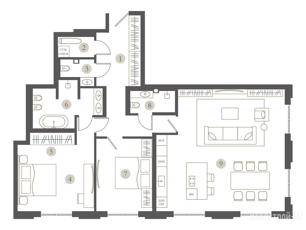Понравилось, что здесь не только квартира, но и доступ к инфраструктуре будет от консьерж-службы до спортзала, бассейна, ресторана и тд. Все под рукой, особенно приятно будет после тяжелого рабочего дня просто спуститься вниз и отдохнуть / заняться спортом и тд