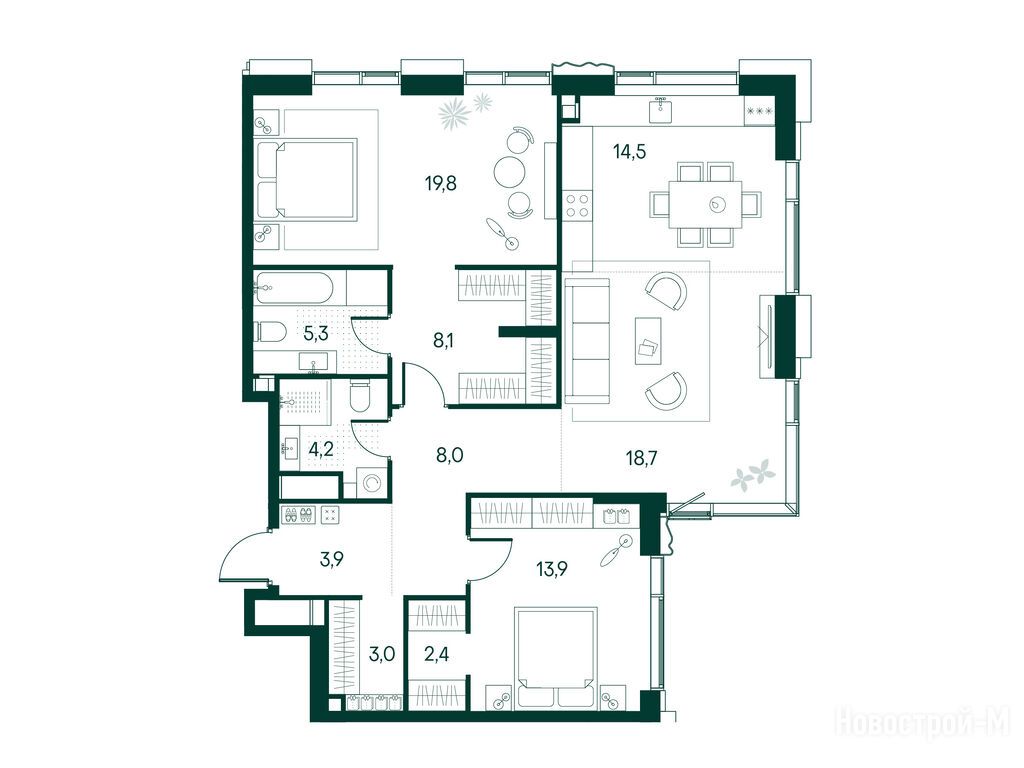 Продается двухкомнатная квартира в новостройке Клубный город на реке Primavera (Примавера) по адресу Москва, СЗАО, Покровское-Стрешнево, Волоколамское шоссе, вл. 71/13, корп. 13. Общая площадь квартиры - 102.8 кв. м. Тип проекта, по которому построен дом — Монолит,Панельно-кирпичный, компания-застройщик — ООО «СЗ «Стадион «Спартак». Стоимость квартиры — 84 090 400 руб. Способы оплаты можно уточнить у продавца. Срок сдачи — 4 квартал 2025. Более подробная информация по телефону.