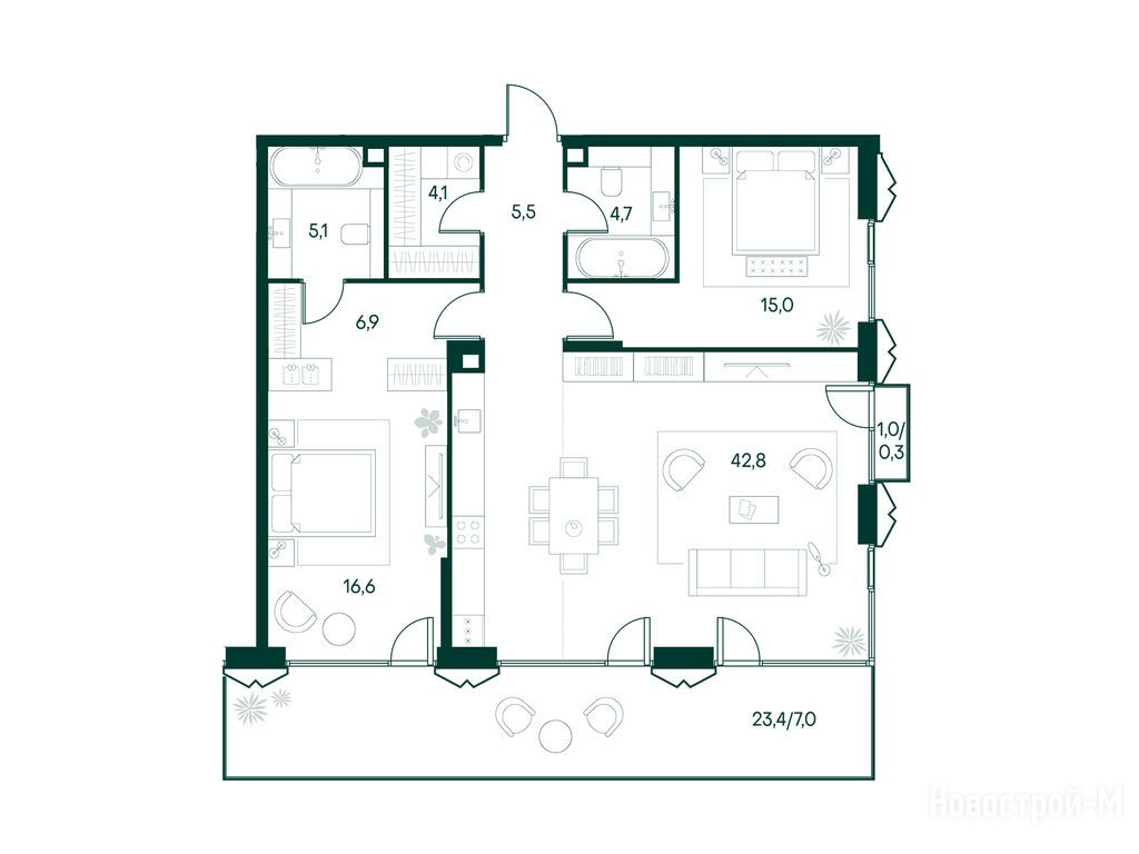 Это удобный вариант для тех, кто не хочет тратить время на ремонт. Важно, что можно выбрать как отделку под ключ, так и без неё, в зависимости от предпочтений.