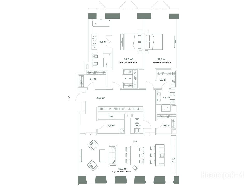 2-комн. апартамент, 177.00 м2, 3 этаж