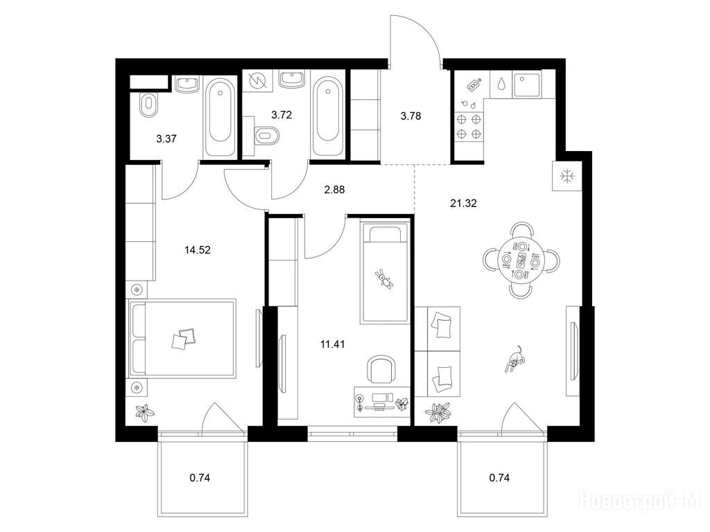 В продаже студии от 28,5 до 30кв.м. По площади как однушки. Заметил, что в Мит все квартиры с нормальной квадратурой, это для меня главное отличие серии Плюс, не считая улучшенной отделки в квартирах и более фактурного внешнего вида домов.