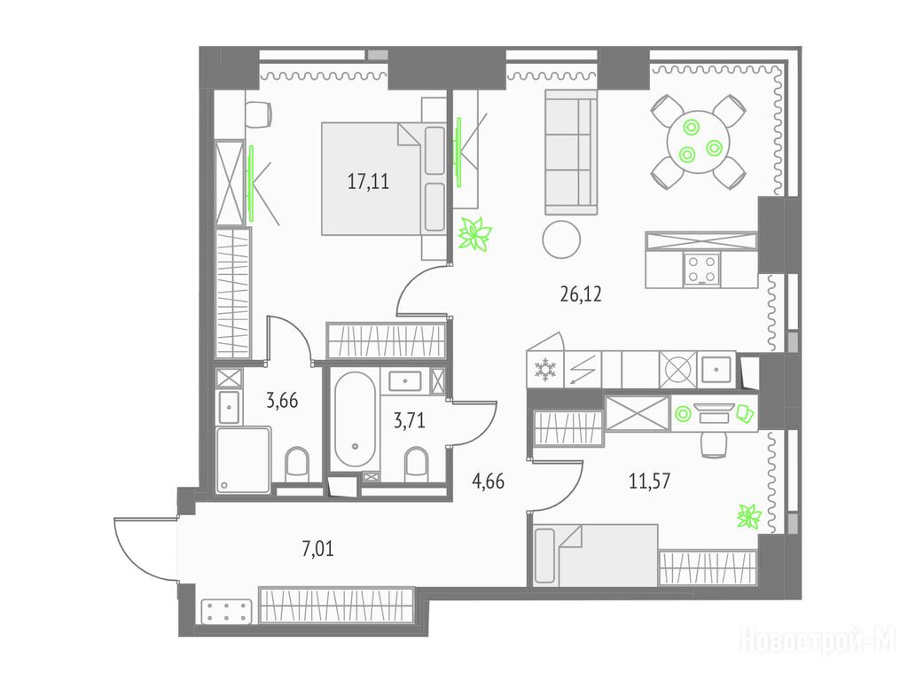 Интересный самодостаточный комплекс, который закроет все проблемы и боли жителей. Район сам по себе неплохой, но строек много, так что свое благоустройство очень сильно поможет, а здесь в башнях будет вся нужная инфрастуктура и на большой территории откроют городской парк. А дальше уж и остальное в округе появится)