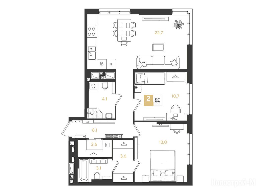 Продается двухкомнатная квартира в новостройке Квартал «Самолет 7» по адресу Краснодарский край, Краснодар, ул. Западный обход, корп. 2.2. Общая площадь квартиры - 67.9 кв. м. Тип проекта, по которому построен дом — Монолитно-кирпичный, компания-застройщик — DOGMA, ООО СЗ Догма-5. Стоимость квартиры — 13 254 080 руб. Способы оплаты можно уточнить у продавца. Срок сдачи — 2 квартал 2028. Более подробная информация по телефону.